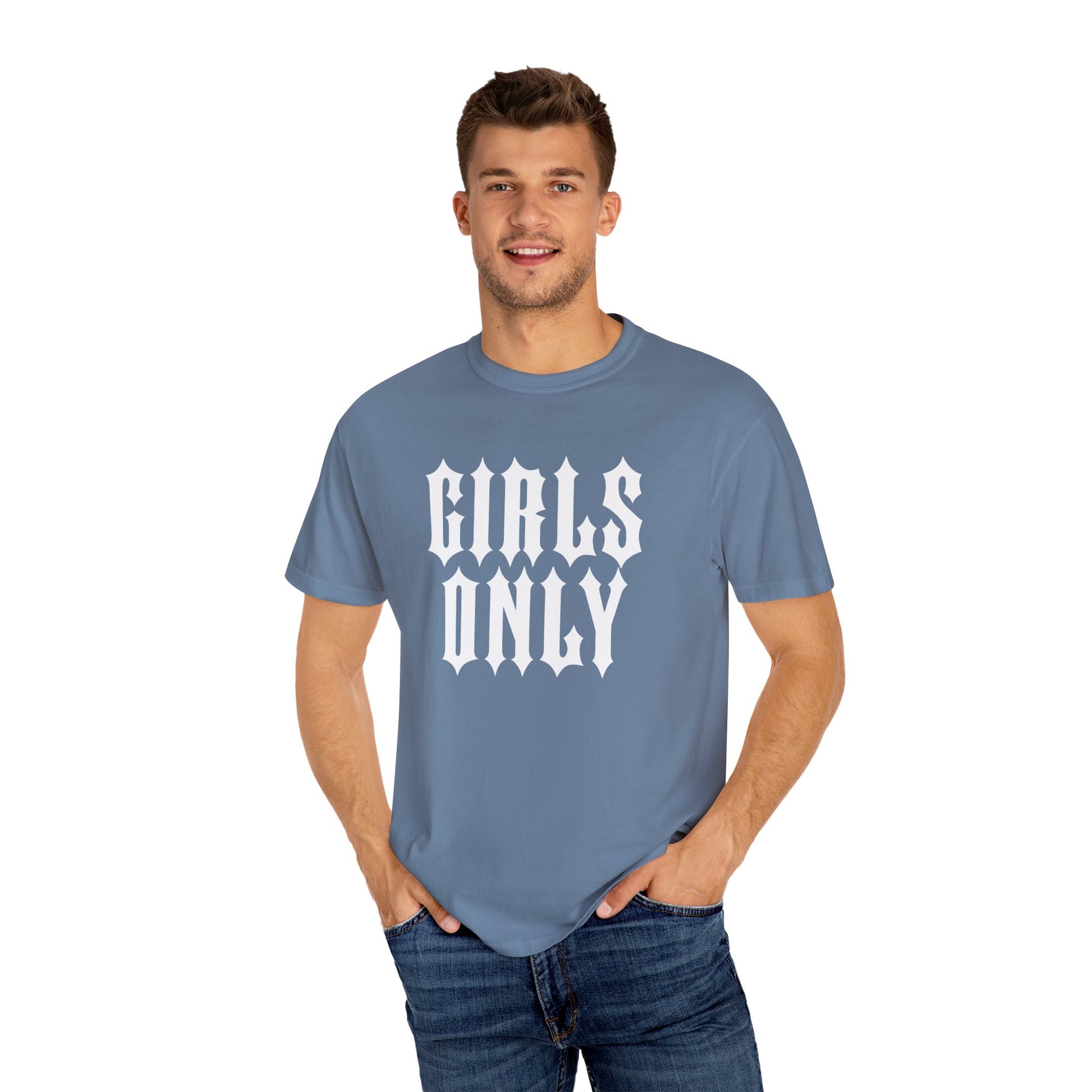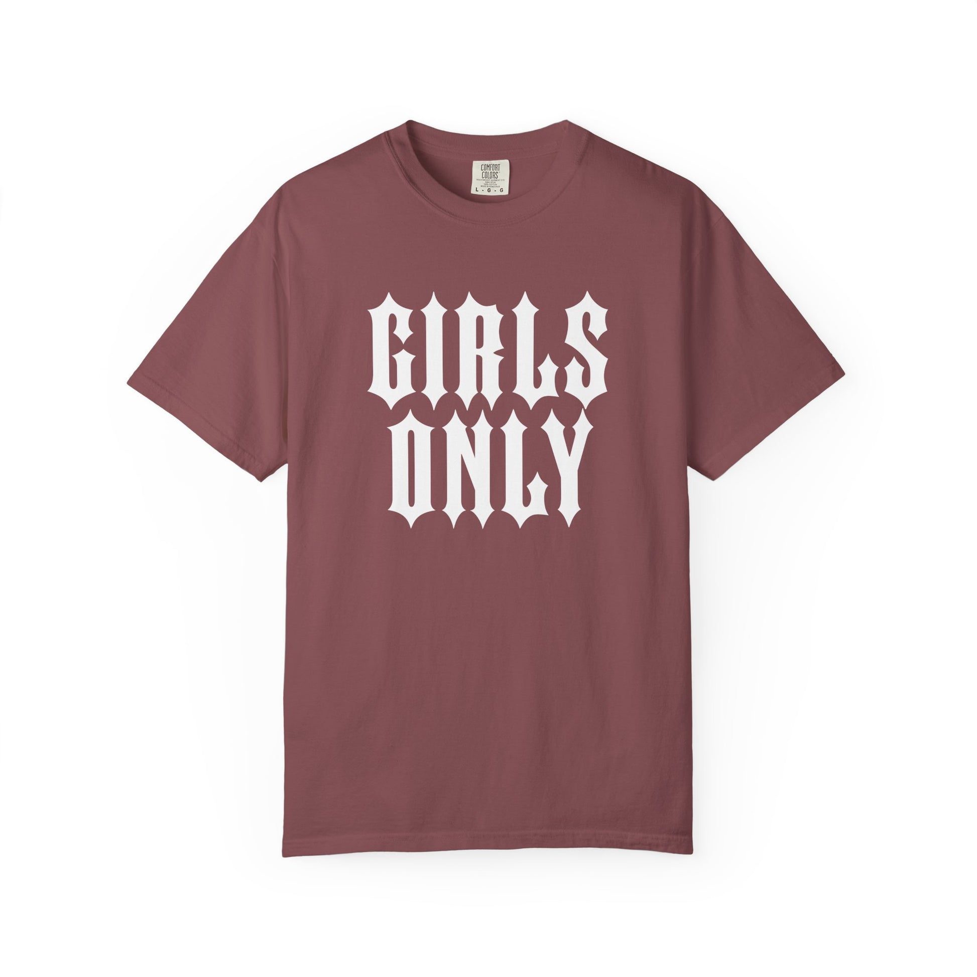 Girls Only shirt printed on a vintage style Y2k Comfort Colors t-shirt. This soft shirt is perfect for your aesthetic outfit.