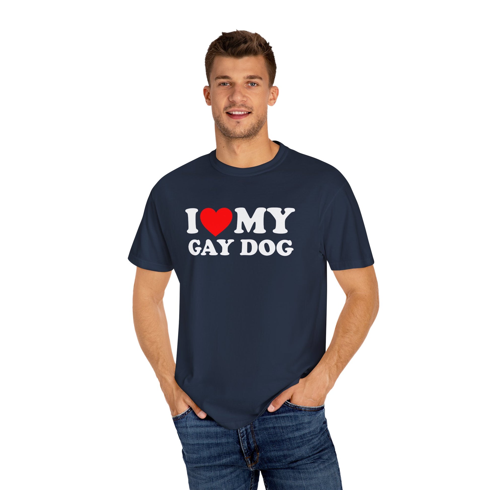 I Love My Gay Dog shirt printed on a vintage style Comfort Colors t-shirt. This soft shirt is perfect for your aesthetic outfit.