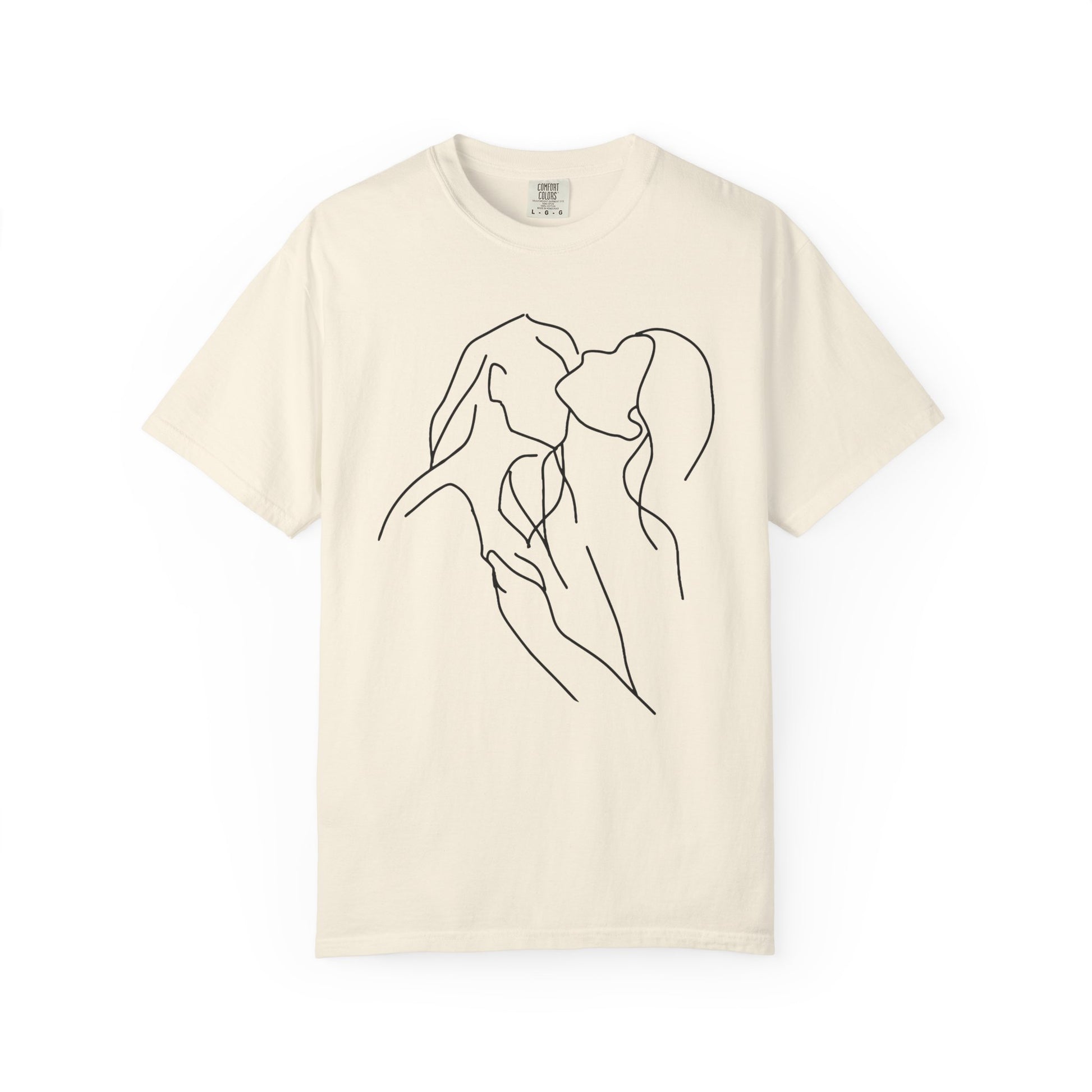 Lesbian Minimal Line art for Women Line Art Kiss shirt Kiss Women T-shirt for women