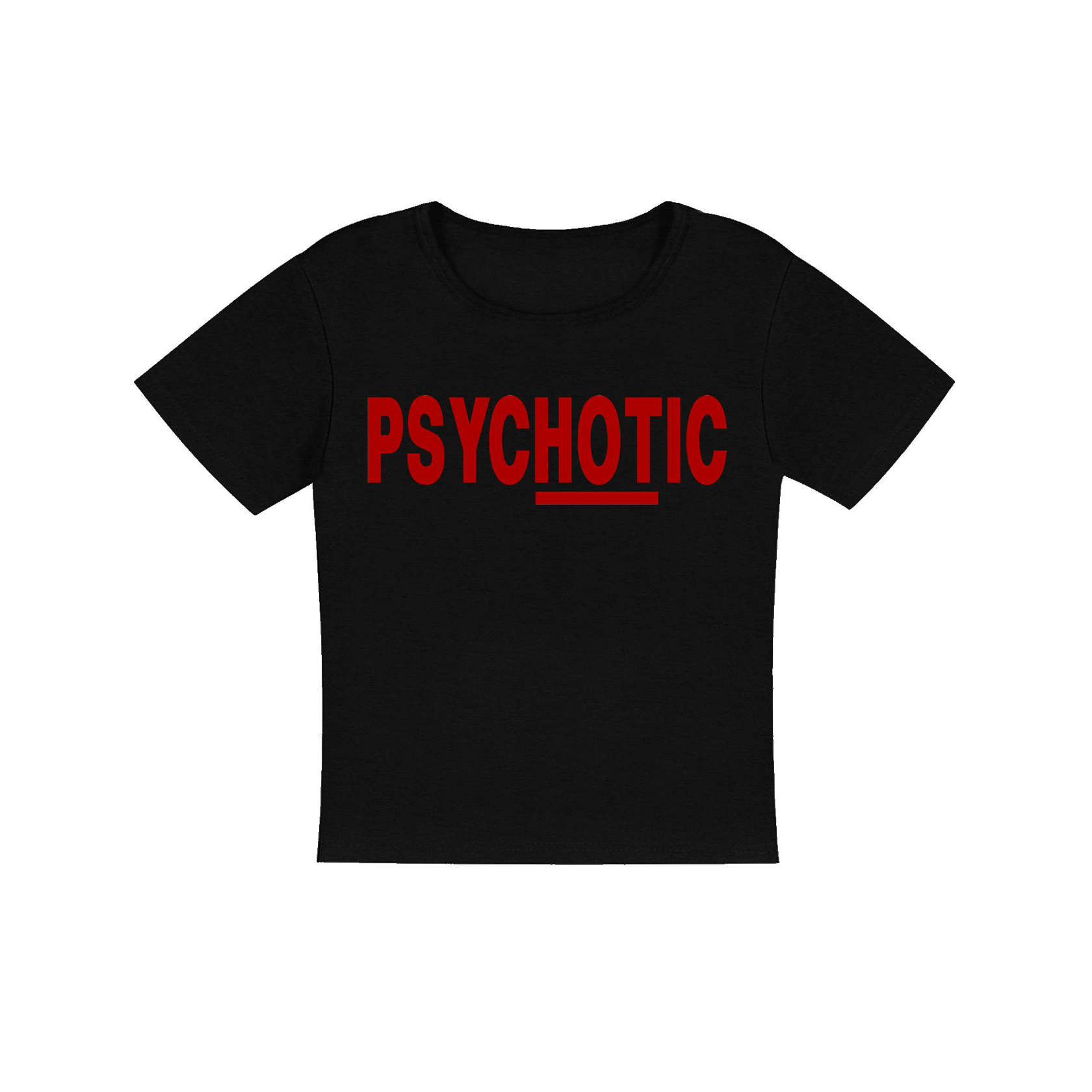 Psychotic Hot shirt with Y2k aesthetic design. This trendy, fitted crop top is perfect for streetwear lovers, 2000s fashion fans, and casual everyday style. It's a must-have aesthetic piece for your outfit!